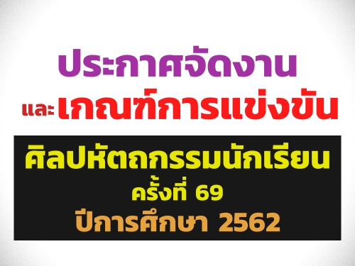 ประกาศจัดงานและเกณฑ์การแข่งขัน ศิลปหัตถกรรมนักเรียน ครั้งที่ 69 ปีการศึกษา 2562