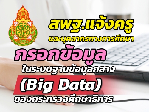 สำนักงานคณะกรรมการการศึกษาขั้นพื้นฐาน มีหนังสือ ขอความร่วมมือครู บุคลากรทางการศึกษาและบุคลากรอื่นสังกัดกระทรวงศึกษาธิการบันทึกข้อมูล ในระบบฐานข้อมูลกลาง (Big Data) ของกระทรวงศึกษาธิการ รายละเอียด ดังนี้