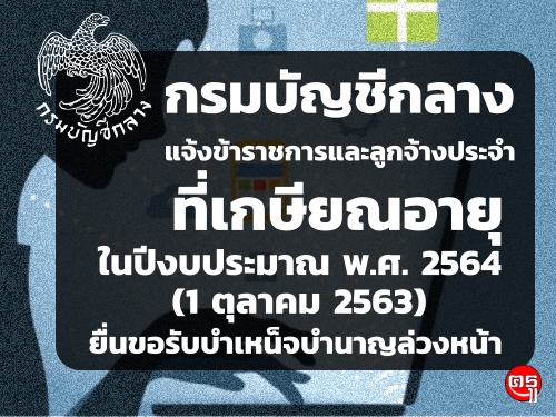 กรมบัญชีกลางเร่งประชาสัมพันธ์เชิงรุก ให้ข้าราชการและลูกจ้างที่จะเกษียณอายุราชการ ยื่นขอรับบำเหน็จบำนาญล่วงหน้าด้วยตนเองทางอิเล็กทรอนิกส์