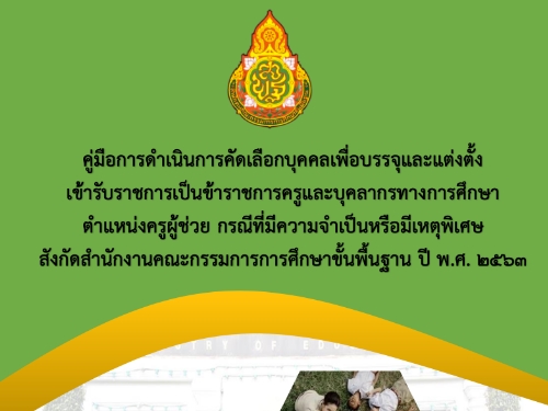 คู่มือการดำเนินการคัดเลือกบุคคลเพื่อบรรจุและแต่งตั้งเข้ารับราชการเป็นข้าราชการครูและบุคลากรทางการศึกษา ตำแหน่งครูผู้ช่วย กรณีที่มีความจำเป็นหรือมีเหตุพิเศษ สังกัด สพฐ. ปี พ.ศ. 2563