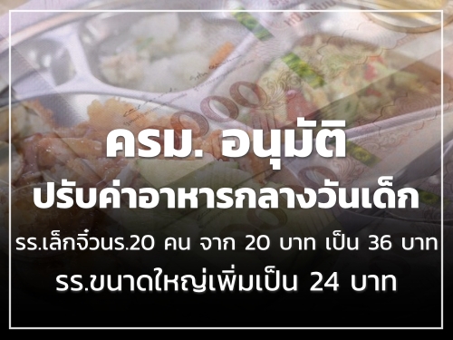 - โรงเรียนขนาดเล็กที่มีจำนวนนักเรียน 1-20 คน เสนอให้ปรับขึ้นจากเดิม 20 บาท เป็น 36 บาท
