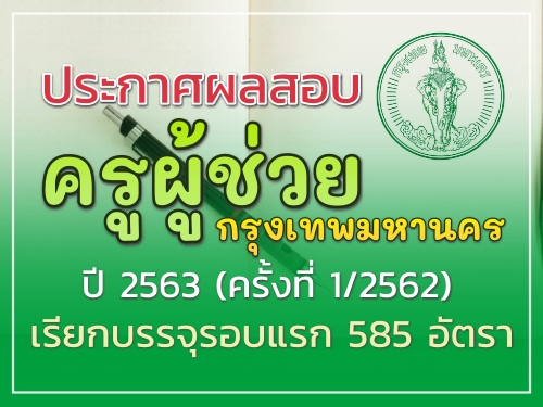 คลิกที่นี่เพื่ออ่าน ประกาศสำนักงานคณะกรรมการข้าราชการกรุงเทพมหานคร เรื่อง ผลการสอบแข่งขันเพื่อบรรจุและแต่งตั้งบุคคลเข้ารับราชการเป็นข้าราชการครูและบุคลากรทางการศึกษากรุงเทพมหานคร ตำแหน่งครูผู้ช่วย ครั้งที่ ๑/๒๕๖๒