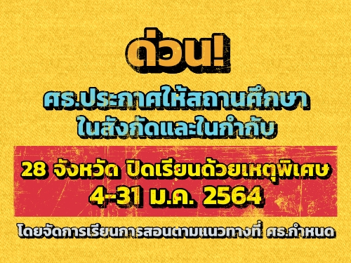 ศธ.ประกาศให้สถานศึกษาในสังกัดและในกำกับ 28 จังหวัด ปิดเรียนด้วยเหตุพิเศษ 4-31 ม.ค.64