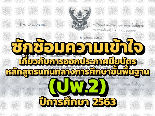 สำนักงานคณะกรรมการการศึกษาขั้นพื้นฐาน มีหนังสือแจ้ง เรื่อง ซักซ้อมความเข้าใจเกี่ยวกับการออกประกาศนียบัตรหลักสูตรแกนกลางการศึกษาขั้นพื้นฐาน (ปพ.2) ปีการศึกษา 2563 รายละเอียด ดังนี้