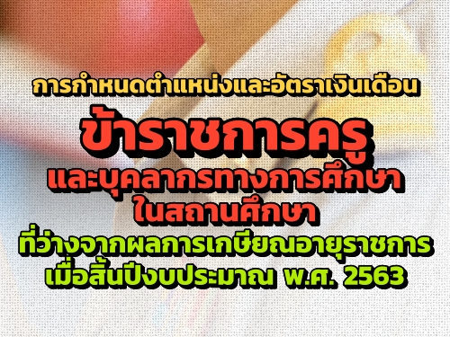 การกำหนดตำแหน่งและอัตราเงินเดือนข้าราชการครูและบุคลากรทางการศึกษาในสถานศึกษา ที่ว่างจากผลการเกษียณอายุราชการ เมื่อสิ้นปีงบประมาณ พ.ศ. 2563