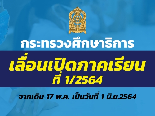 กระทรวงศึกษาธิการ เลื่อนเปิดภาคเรียนที่ 1/2564 เป็นวันที่ 1 มิถุนายน 2564 หนีวิกฤตโควิด19 “ตรีนุช” ย้ำผู้บริหารทุกองค์กรหลักที่มีสถานศึกษา ให้เตรียมความพร้อมครู บุคลากร เลื่อนวันเปิดเทอมไม่กระทบต่อโอกาสและสิทธิของผู้เรียน