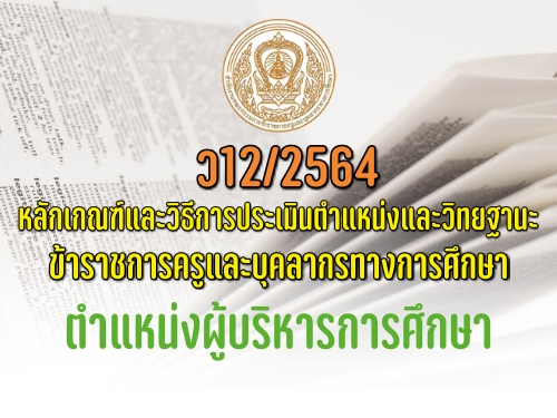 ว12/2564 หลักเกณฑ์และวิธีการประเมินตำแหน่งและวิทยฐานะข้าราชการครูและบุคลากรทางการศึกษา ตำแหน่งผู้บริหารการศึกษา