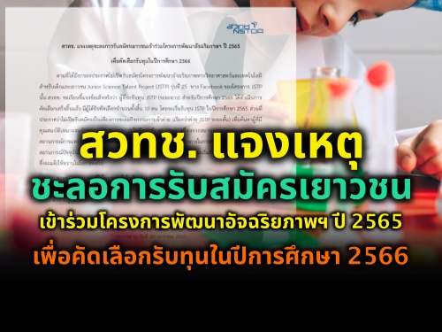 สวทช. แจงเหตุชะลอการรับสมัครเยาวชนเข้าร่วมโครงการพัฒนาอัจฉริยภาพฯ ปี 2565 เพื่อคัดเลือกรับทุนในปีการศึกษา 2566