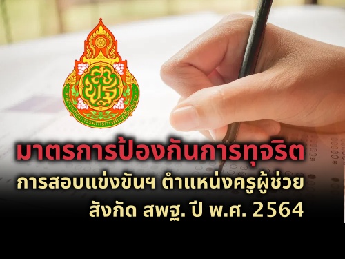 มาตรการป้องกันการทุจริตการสอบแข่งขันฯ ตำแหน่งครูผู้ช่วย สังกัด สพฐ. ปี พ.ศ. 2564มาตรการป้องกันการทุจริตการสอบแข่งขันฯตำแหน่งครูผู้ช่วยสังกัดสพฐ.ปีพ.ศ.2564