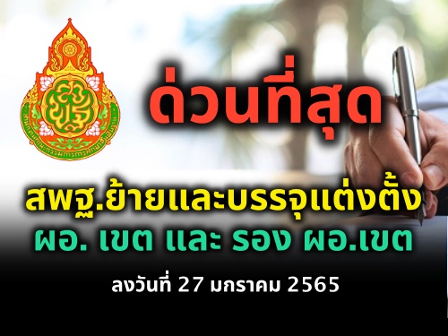 ด่วนที่สุด! สพฐ.ย้ายและบรรจุแต่งตั้ง ผอ.เขตพื้นที่การศึกษา และรอง ผอ.เขตพื้นที่การศึกษา ลงวันที่ 27 มกราคม 2565