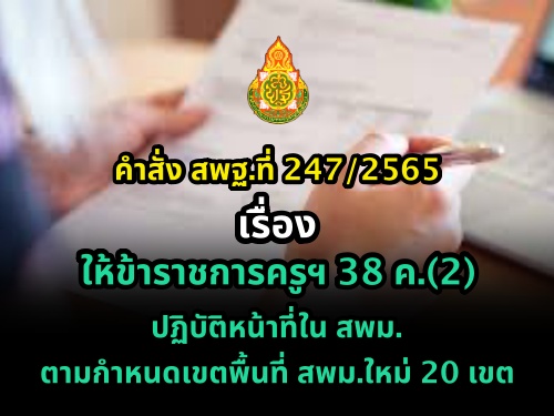 คำสั่ง สพฐ.ที่ 247/2565 เรื่อง ให้ข้าราชการครูฯ 38 ค.(2) ปฏิบัติหน้าที่ใน สพม. ตามกำหนดเขตพื้นที่ สพ