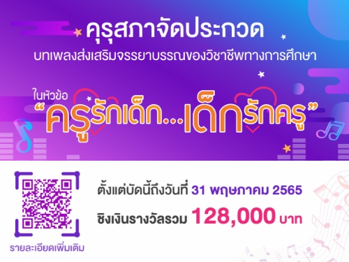 รศ.ดร.ประวิต เอราวรรณ์ เลขาธิการ ก.ค.ศ. รักษาการเลขาธิการคุรุสภา กล่าวว่า สำนักงานเลขาธิการคุรุสภาขอเชิญชวนนักเรียน นิสิต นักศึกษา และประชาชนทั่วไป ส่งผลงานเข้าร่วมประกวดบทเพลงเสริมจรรยาบรรณของวิชาชีพทางการศึกษา ในหัวข้อ “ครูรักเด็ก…เด็กรักครู” เพื่อรณรงค์ ส่งเสริม สนับสนุนในเรื่องจรรยาบรรณของวิชาชีพทางการศึกษา ซึ่งจะเป็นการเสริมสร้างค่านิยมในการประพฤติปฏิบัติตนตามหลักจรรยาบรรณของวิชาชีพ โดยเปิดโอกาสให้นักเรียน นิสิต นักศึกษา และประชาชน มีส่วนร่วมในการสร้างสรรค์บทเพลงที่สะท้อนมุมมองเกี่ยวกับครูดีที่มีจรรยาบรรณ
