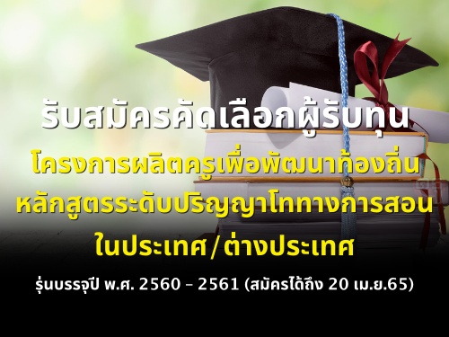 ประชาสัมพันธ์ การรับสมัครคัดเลือกผู้รับทุนโครงการผลิตครูเพื่อพัฒนาท้องถิ่น หลักสูตรระดับปริญญาโททางการสอนในประเทศ/ต่างประเทศ รุ่นบรรจุปี พ.ศ. 2560 – 2561