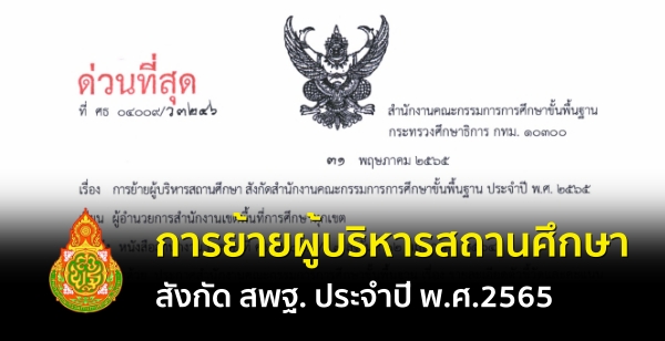 การย้ายผู้บริหารสถานศึกษา สังกัดสำนักงานคณะกรรมการการศึกษาขั้นพื้นฐาน ประจำปี พ.ศ.2565