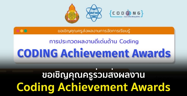 สถาบันบันส่งเสริมการสอนวิทยาศาสตร์และเทคโนโลยี (สสวท.) กระทรวงศึกษาธิการ ร่วมกับสำนักงานคณะกรรมการการศึกษาขั้นพื้นฐาน (สพฐ.) ขอเชิญคุณครูสังกัด สพฐ. ระดับประถมและมัธยมศึกษาร่วมส่งผลงานการจัดการเรียนรู้ ในการประกวดผลงานดีเด่นด้าน Coding (Coding Achievement Awards) เปิดรับสมัครตั้งแต่วันนี้ ถึง 15 กรกฎาคม 2565 และประกาศผลการคัดเลือกภายใน 15 สิงหาคม 2565 โดยผลงานที่ได้รับคัดเลือกจากแต่ละภูมิภาคจะนำมาจัดแสดงเพื่อเผยแพร่องค์ความรู้ และแสดงผลงานดีเด่นการจัดการเรียนรู้ด้าน Coding และรับเกียรติบัตรพร้อมโล่รางวัล จากกระทรวงศึกษาธิการ รายละเอียดดังนี้