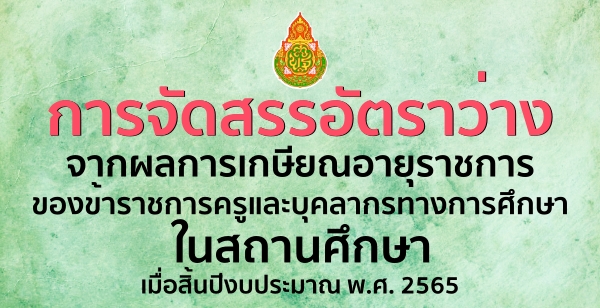 การจัดสรรอัตราว่างจากผลการเกษียณอายุราชการของข้าราชการครูและบุคลากรทางการศึกษาในสถานศึกษา เมื่อสิ้นปีงบประมาณ พ.ศ. 2565การจัดสรรอัตราว่างจากผลการเกษียณอายุราชการของข้าราชการครูและบุคลากรทางการศึกษาในสถานศึกษาเมื่อสิ้นปีงบประมาณพ.ศ.2565