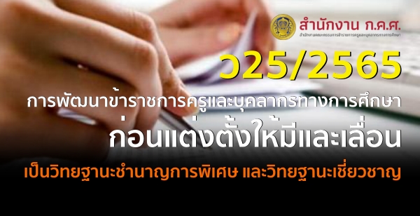 ว25/2565 การพัฒนาข้าราชการครูและบุคลากรทางการศึกษาก่อนแต่งตั้งให้มีและเลื่อนเป็นวิทยฐานะชำนาญการพิเศษ/เชี่ยวชาญ