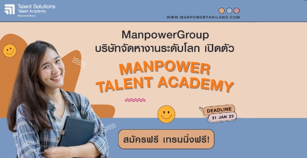 Manpower Talent Academy เปิดรับสมัคร Manpower Trainee ครั้งแรกในประเทศไทย!!! เพื่อร่วมเรียนรู้ สัมผัสประสบกาณ์ในการทำงานจัดหาคน และการสัมภาษณ์ โดยตรงจากผู้เชี่ยวชาญจากทุกหน่วยงานของแมนพาวเวอร์กรุ๊ป ที่จะมาถ่ายทอดวิชาให้แบบเอ็กซ์คลูซีฟ เพื่อก้าวสู่การเป็น Recruiter หน้าใหม่ของวงการ HR และยังเป็นโอกาสสำคัญที่จะได้รับคัดเลือกเข้าทำงานกับแมนพาวเวอร์กรุ๊ป บริษัทชั้นนำระดับโลก หนึ่งในลิสต์ของ Fortune 500 companies ที่เปิดให้บริการมากว่า 70 ปี และได้ถูกจัดอันดับว่าเป็นบริษัทที่มีจรรยาบรรณมากที่สุดในโลก 13 ปีซ้อน