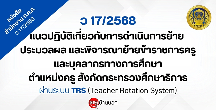 ว 1/2569 การให้ข้าราชการครูและบุคลากรทางการศึกษาผู้ได้รับรางวัลจากผลงานเชิงประจักษ์ซึ่งส่งผลต่อการยกระดับคุณภาพการศึกษา มีหรือเลื่อนเป็นวิทยฐานะเชี่ยวชาญและวิทยฐานะเชี่ยวชาญพิเศษ