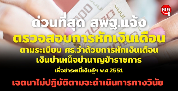 สำนักงานคณะกรรมการการศึกษาขั้นพื้นฐาน มีหนังสือ ด่วนที่สุด ที่ ศธ 04001/ว640 ลงวันที่ 31 มกราคม 2567 เรื่อง ขอให้ปฏิบัติตามระเบียบกระทรวงศึกษาธิการ ว่าด้วยการหักเงินเดือนเงินบำเหน็จบำนาญข้าราชการ เพื่อชำระหนี้เงินกู้ให้แก่สวัสดิการภายในส่วนราชการและสหกรณ์ พ.ศ.2551