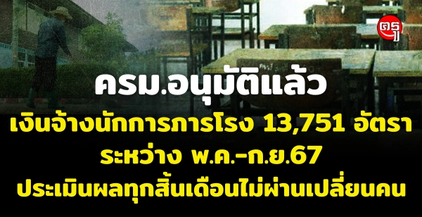 ครม.อนุมัติแล้วเงินจ้างนักการภารโรง 13,751 อัตรา ระหว่าง พ.ค.-ก.ย.67 ประเมินผลทุกสิ้นเดือนไม่ผ่านเปลี่ยนคนจ้างภารโรงจ้างนักการภารโรง