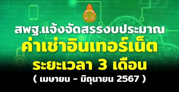 ตามที่ สำนักงานคณะกรรมการการศึกษาขั้นพื้นฐานได้จัดสรรงบประมาณรายจ่าย ประจำปีงบประมาณ พ.ศ.2566 ไปพลางก่อน เพื่อเป็นค่าเช่าใช้บริการสัญญาณอินเทอร์เน็ต ประจำปีงบประมาณ พ.ศ.2567 ระยะเวลา 6 เดือน ให้กับสำนักงานเขตพื้นที่การศึกษา โรงเรียนในสังกัดสำนักงานเขตพื้นที่การศึกษา ความแจ้งแล้วนั้น