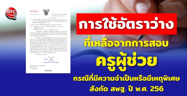 ด่วนที่สุดที่ ศธ 04009/3321 ลงวันที่ 31 พฤษภาคม 2567 เรื่อง การใช้อัตราว่างที่เหลือจากการคัดเลือกบุคคลเพื่อบรรจุและแต่งตั้งเข้ารับราชการเป็นข้าราชการครูและบุคลากรทางการศึกษา ตำแหน่งครูผู้ช่วย กรณีที่มีความจำเป็นหรือมีเหตุพิเศษ สังกัดสำนักงานคณะกรรมการการศึกษาขั้นพื้นฐาน ปี พ.ศ. 2567