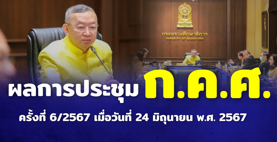 ผลการประชุมคณะกรรมการข้าราชการครูและบุคลากรทางการศึกษา (ก.ค.ศ.) ครั้งที่ 6/2567 วันจันทร์ที่ 24 มิถุนายน พ.ศ. 2567 โดยมี พล.ต.อ.เพิ่มพูน ชิดชอบ รัฐมนตรีว่าการกระทรวงศึกษาธิการ เป็นประธานการประชุม และมี รศ.ดร.ประวิต เอราวรรณ์ เลขาธิการ ก.ค.ศ. เป็นเลขานุการการประชุมซึ่งที่ประชุมได้มีการพิจารณาเรื่องที่เกี่ยวข้องกับการบริหารงานบุคคลของข้าราชการครูและบุคลากรทางการศึกษาและมีมติที่สำคัญ ดังนี้