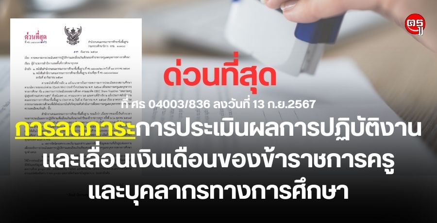 เรื่อง การลดภาระการประเมินผลการปฏิบัติงานและเลื่อนเงินเดือนของข้าราชการครูและบุคลากรทางการศึกษา