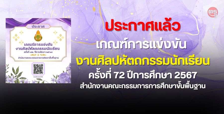 ประกาศ เกณฑ์การแข่งขันงานศิลปหัตถกรรมนักเรียน ครั้งที่ 72 ปีการศึกษา 2567