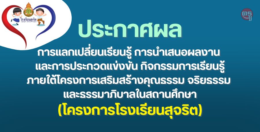 การประกาศผลการแลกเปลี่ยนเรียนรู้ การนำเสนอผลงาน และการประกวดแข่งขัน กิจกรรมการเรียนรู้ภายใต้โครงการเสริมสร้างคุณธรรม จริยธรรม และธรรมาภิบาลในสถานศึกษา