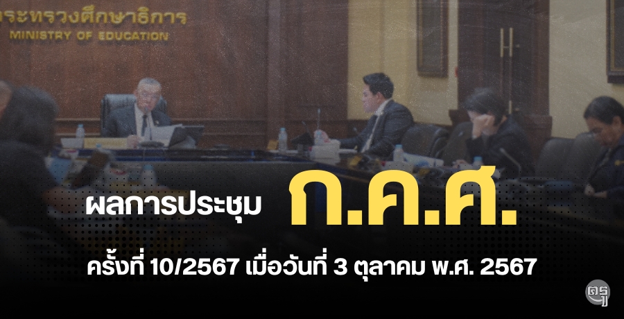 ผลการประชุมคณะกรรมการข้าราชการครูและบุคลากรทางการศึกษา (ก.ค.ศ.) ครั้งที่ 10/2567 วันพฤหัสบดีที่ 3 ตุลาคม พ.ศ. 2567 โดยมี พล.ต.อ.เพิ่มพูน ชิดชอบ รัฐมนตรีว่าการกระทรวงศึกษาธิการ เป็นประธานการประชุม และมี รศ.ดร.ประวิต เอราวรรณ์ เลขาธิการสภาการศึกษา รักษาราชการแทน เลขาธิการ ก.ค.ศ. เป็นเลขานุการการประชุม ซึ่งที่ประชุมได้มีการพิจารณาเรื่องที่เกี่ยวข้องกับการบริหารงานบุคคลของข้าราชการครูและบุคลากรทางการศึกษาและมีมติที่สำคัญ ดังนี้