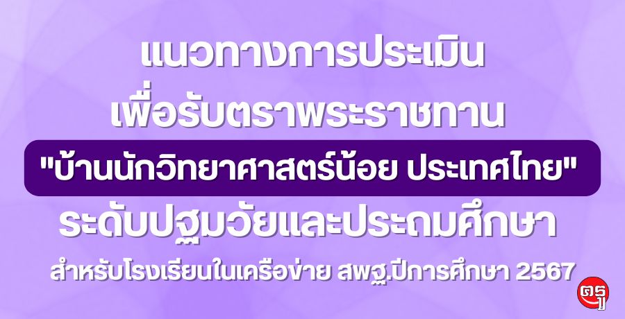 แนวทางการประเมินเพื่อรับตราพระราชทาน "บ้านนักวิทยาศาสตร์น้อย ประเทศไทย" ระดับปฐมวัยและประถมศึกษา สำหรับโรงเรียนในเครือข่าย สำนักงานคณะกรรมการการศึกษาขั้นพื้นฐาน ปีการศึกษา 2567