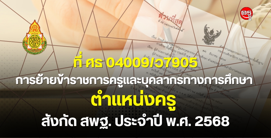 สำนักงานคณะกรรมการการศึกษาขั้นพื้นฐาน มีหนังสือ ที่ ศธ 04009/ว7905 เรื่อง การย้ายข้าราชการครูและบุคลากรทางการศึกษา ตำแหน่งครู สังกัดสำนักงานคณะกรรมการการศึกษาขั้นพื้นฐาน ประจำปี พ.ศ. 2568