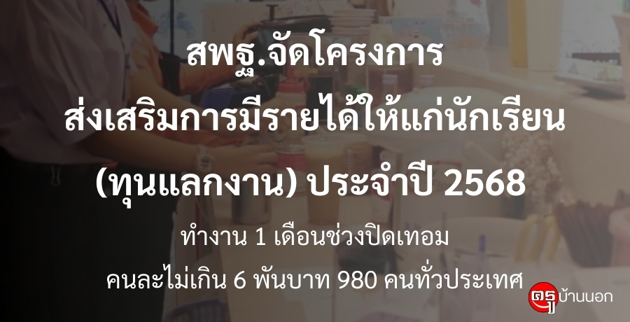 ด้วยกระทรวงศึกษาธิการมีนโยบายลดภาระนักเรียนและผู้ปกครองเพื่อพัฒนาทักษะที่ใช้ประโยชนได้ในชีวิตจริงของผู้เรียน มีรายได้ระหว่างเรียน จบแล้วมีงานทำ (Learn to Earn) สำนักงานคณะกรรมการการศึกษาขั้นพื้นฐานจึงกำหนดดำเนินโครงการส่งเสริมการมีรายได้ให้แก่นักเรียน (ทุนแลกงาน) ประจำปี พ.ศ. 2568 ระหว่างวันที่ 24 มีนาคม - 24 เมษายน 2568 เพื่อให้นักเรียนนำรายได้ จากการทำงานไปใช้เป็นทุนการศึกษา ใช้เวลาว่างให้เกิดประโยชน์ ฝึกวินัย ความรับผิดชอบ และการตรงต่อเวลา