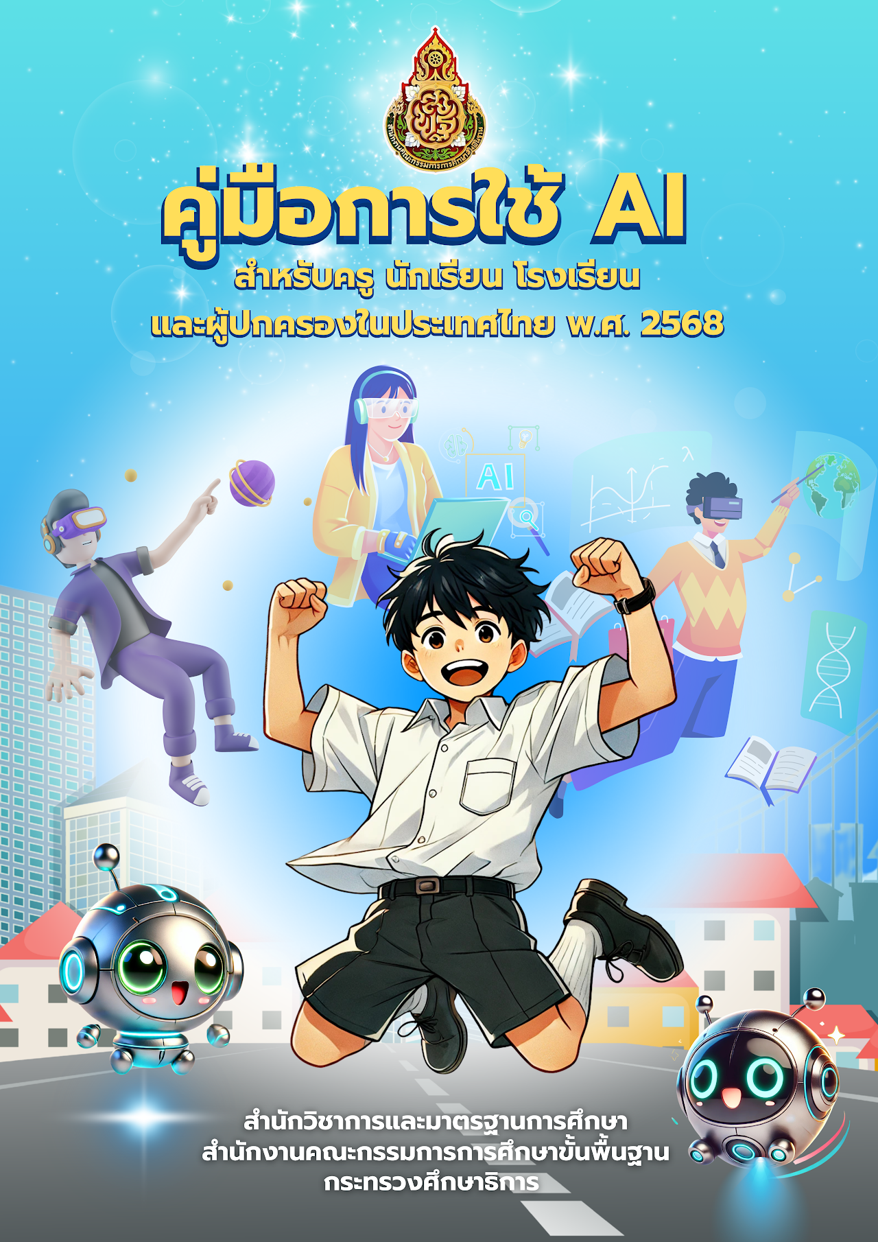 คู่มือการใช้ AI สำหรับครู นักเรียน โรงเรียน และผู้ปกครองในระดับการศึกษาขั้นพื้นฐาน พ.ศ. 2568 มีเนื้อหาประกอบด้วย ความรู้เบื้องต้นเกี่ยวกับ AI ประโยชน์และความเสี่ยงของ AI การใช้งาน AI ในภาพรวมตามบทบาทหน้าที่ การใช้ AI เพื่อสนับสนุนภารกิจในระบบการศึกษาของไทย ข้อควรรู้ที่ครูต้องใส่ใจเมื่อใช้ AI การกำหนดระดับการเรียนรู้ด้าน AI จริยธรรมและความซื่อสัตย์ทางวิชาการและสิ่งที่โรงเรียนสามารถดำเนินการเพื่อเตรียมความพร้อมในยุค AI เพื่อเป็นแนวทางในการเรียนรู้เกี่ยวกับเทคโนโลยีปัญญาประดิษฐ์ (AI) ซึ่งสำนักงานคณะกรรมการการศึกษาขั้นพื้นฐานหวังเป็นอย่างยิ่งว่าจะเป็นคู่มือที่มีประโยชน์ต่อครู นักเรียน โรงเรียน และผู้ปกครอง เพื่อไปใช้เป็นแนวทางในการพัฒนาคุณภาพการศึกษาให้ดียิ่งขึ้น และรับมือกับการเปลี่ยนแปลงอย่างรวดเร็วทางเทคโนโลยีในศตวรรษที่ 21