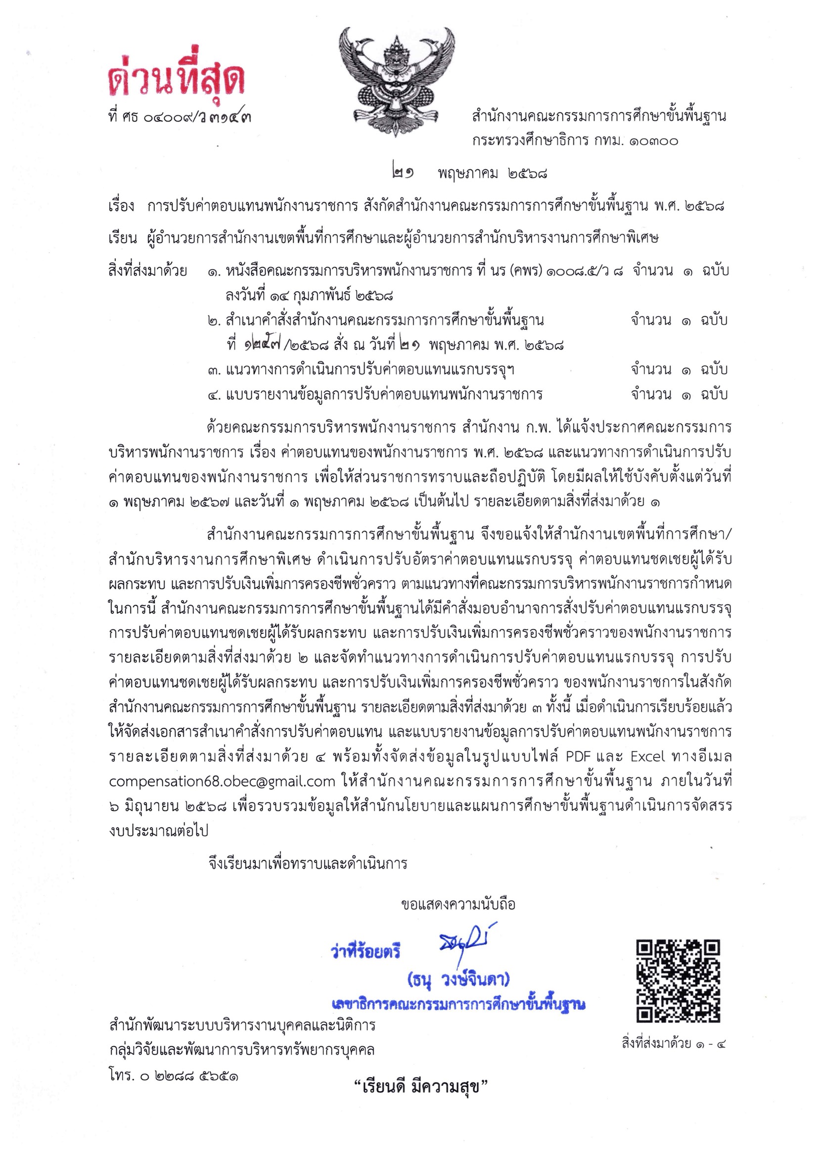 การปรับค่าตอบแทนพนักงานราชการ สังกัดสำนักงานคณะกรรมการการศึกษาขั้นพื้นฐาน พ.ศ. 2568
