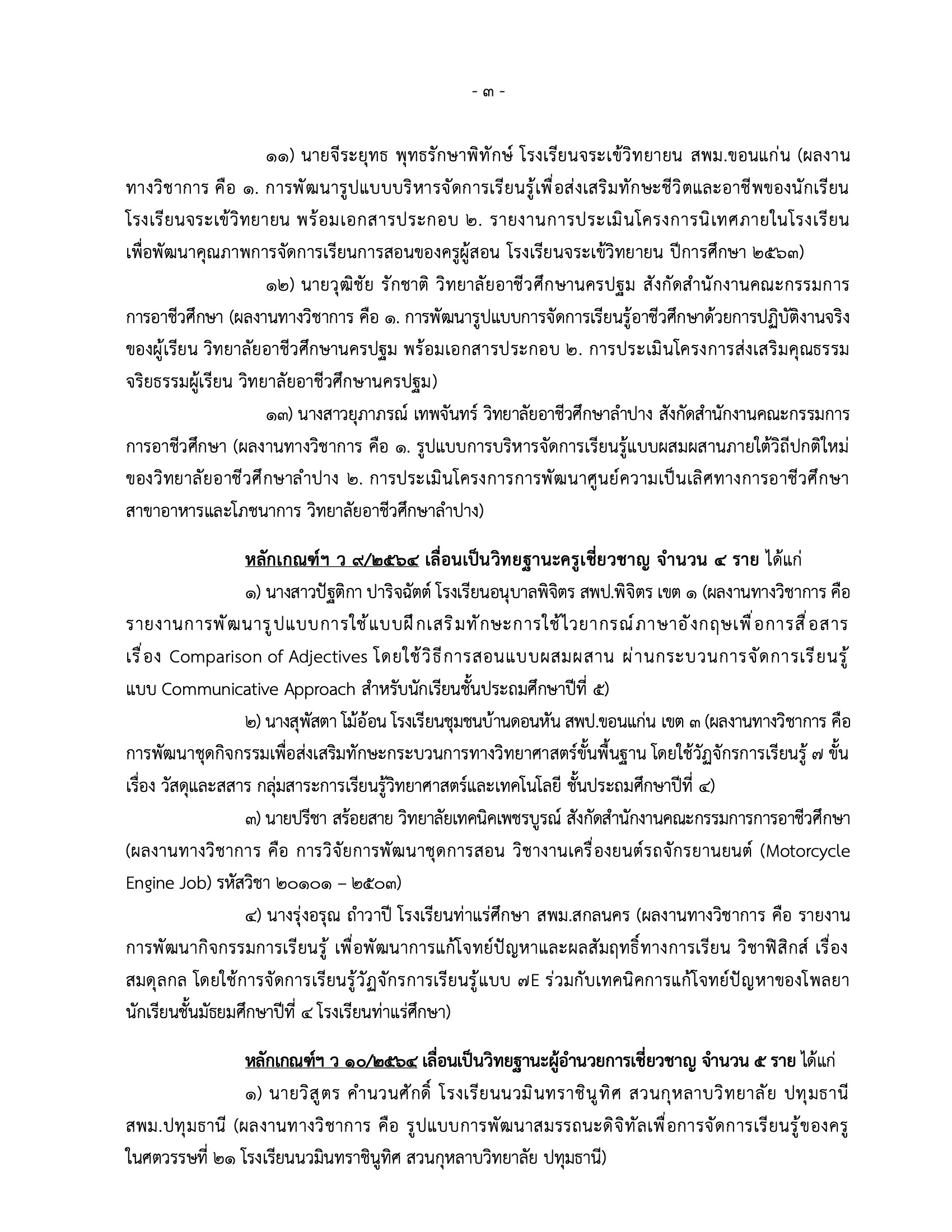 เลขาธิการ ก.ค.ศ.เปิดเผยว่าในการประชุมอ.ก.ค.ศ.วิสามัญเกี่ยวกับวิทยฐานะข้าราชการครู และบุคลากรทางการศึกษา ครั้งที่ 5/2568 เมื่อวันพุธที่ 21 พฤษภาคม 2568 ได้มีมติอนุมัติให้ข้าราชการครูและบุคลากรทางการศึกษามีและเลื่อนเป็นวิทยฐานะเชี่ยวชาญ จำนวน 24 ราย ได้แก่