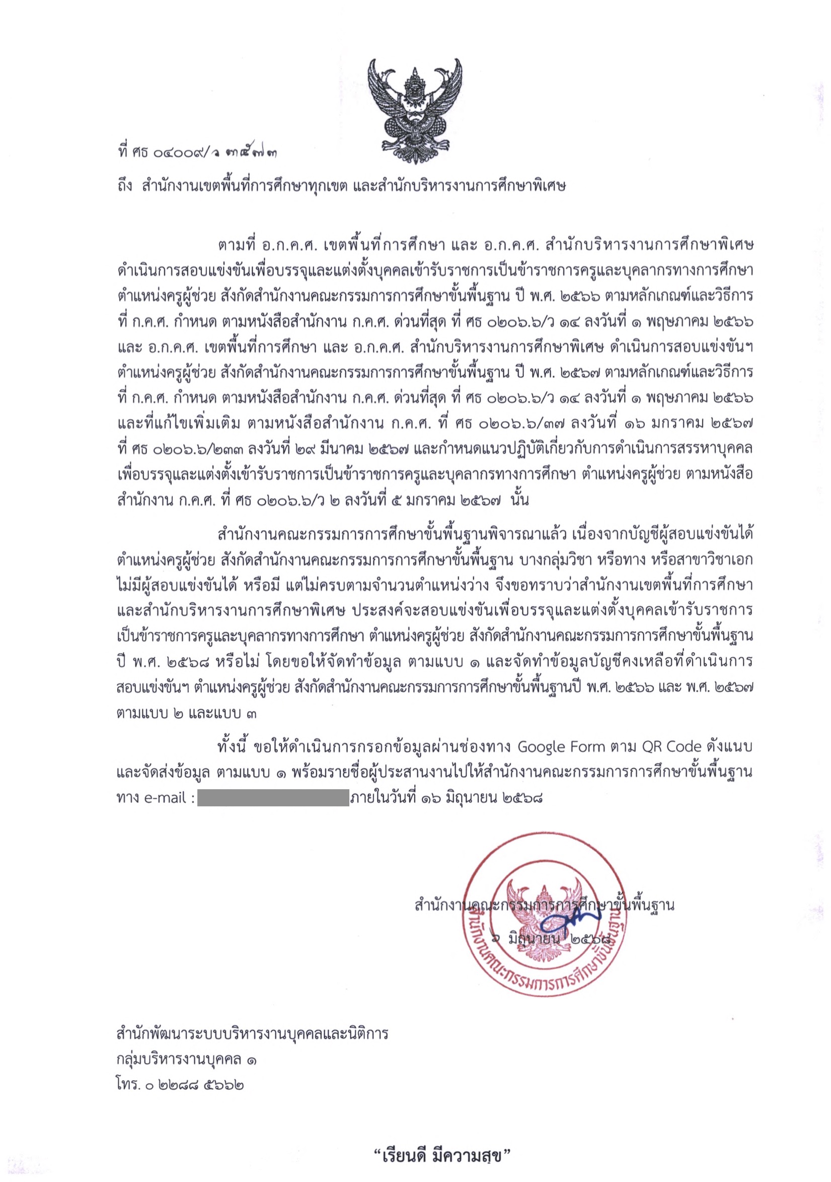 ทั้งนี้ ให้ สพท.รายงานข้อมูลดังกล่าวปยัง สพฐ. ภายในวันที่ 16 มิถุนายน 2568 นี้