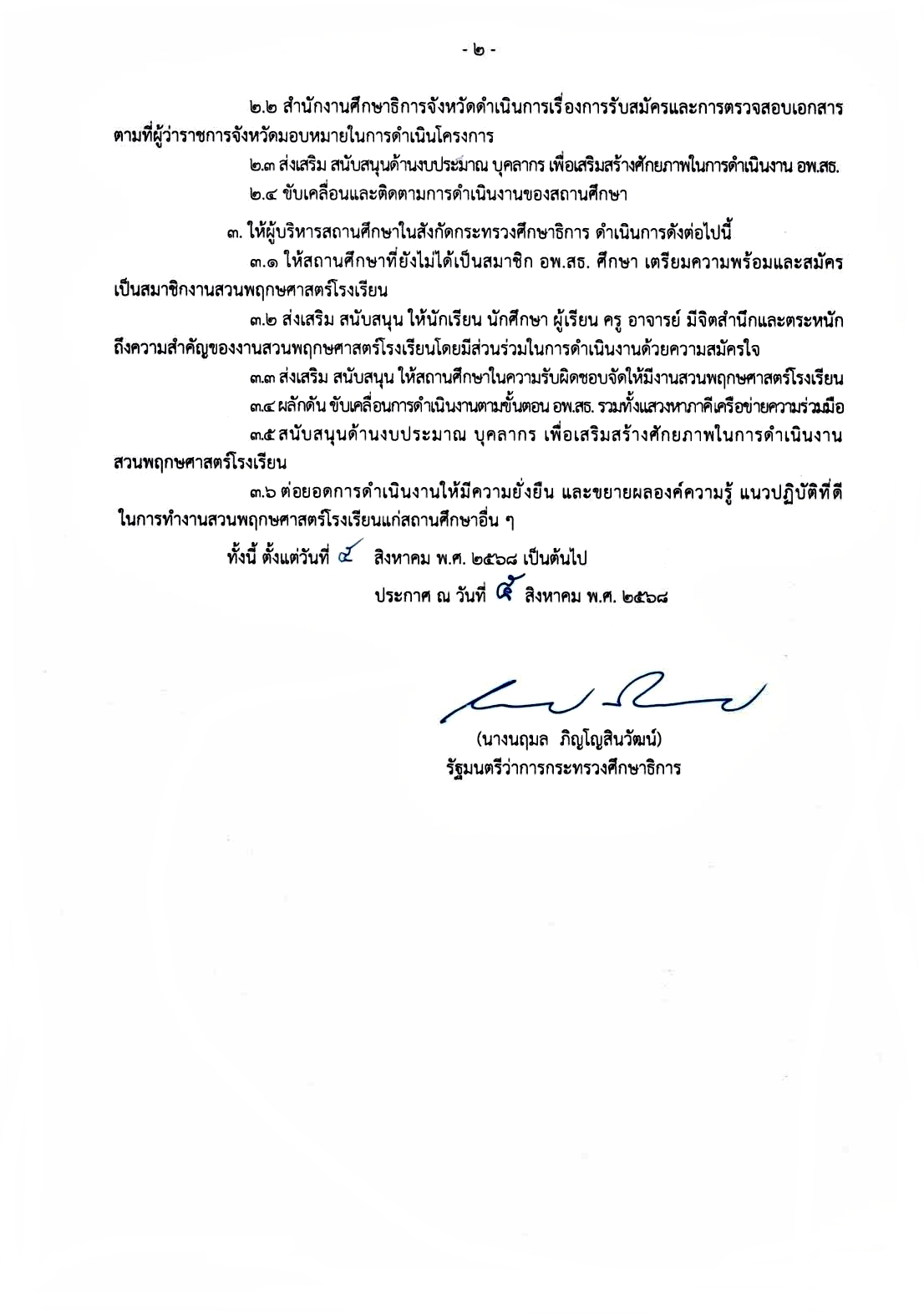 ประกาศกระทรวงศึกษาธิการ "แนวปฏิบัติการดําเนินงานโครงการอนุรักษ์พันธุกรรมพืชอันเนื่องมาจากพระราชดําริ สมเด็จพระเทพรัตนราชสุดาฯ สยามบรมราชกุมารี กระทรวงศึกษาธิการ พ.ศ. 2568"