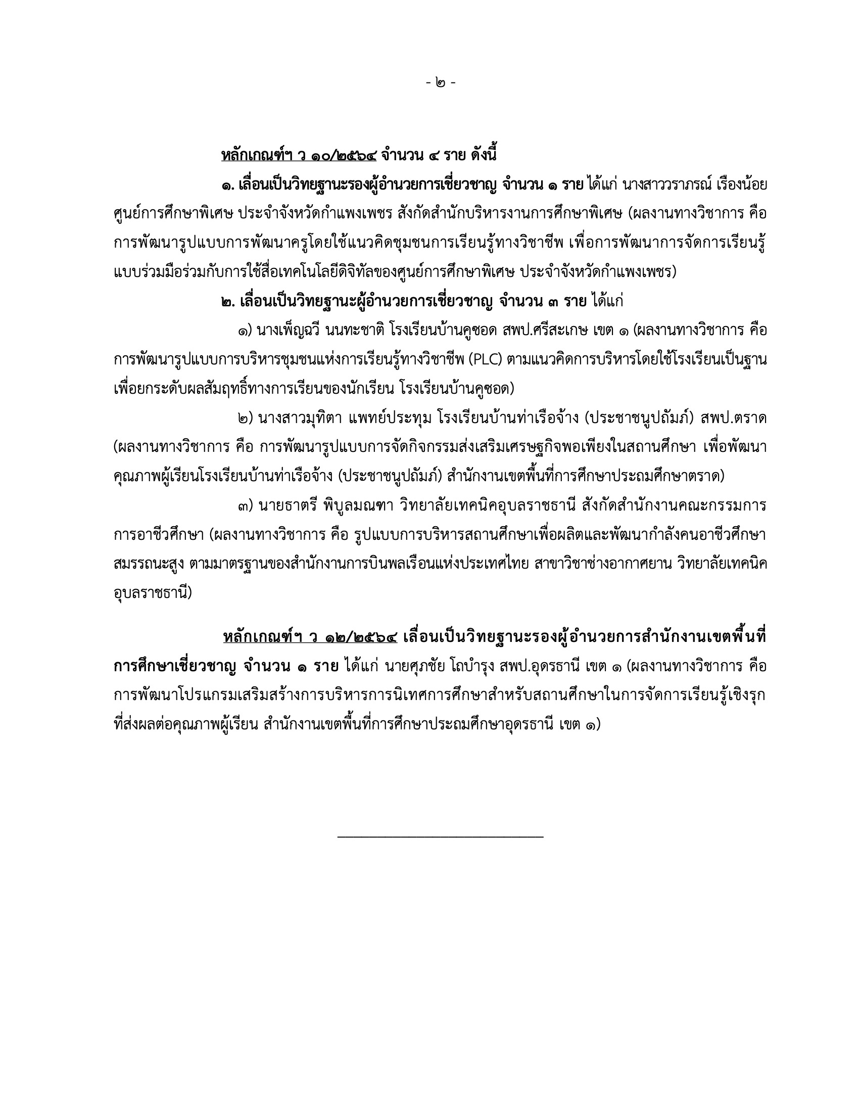 - วิทยฐานะรองผู้อำนวยการสำนักงานเขตพื้นที่การศึกษาเชี่ยวชาญ จำนวน 1 ราย