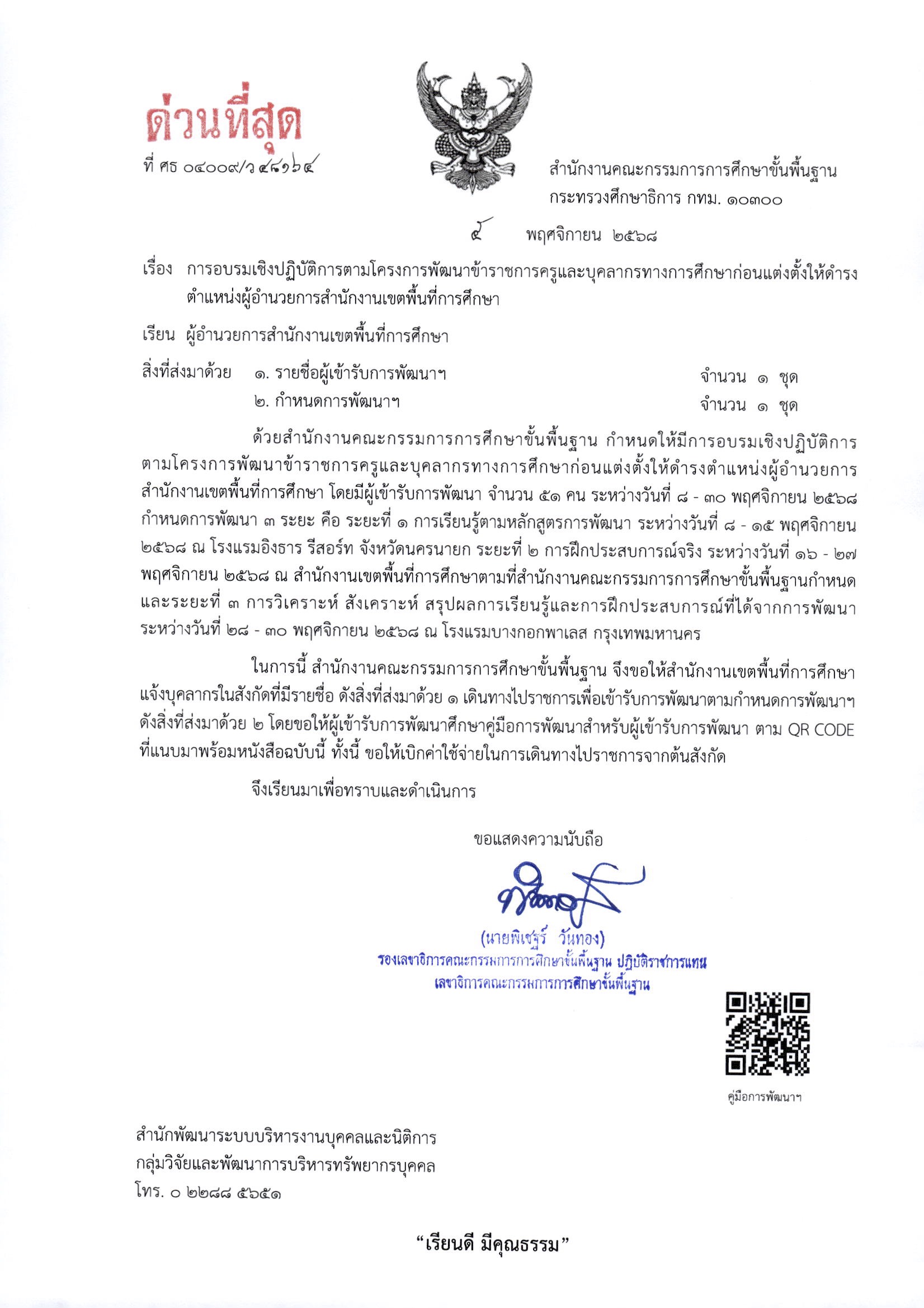 1. หนังสือแจ้งผู้เข้ารับการพัฒนา