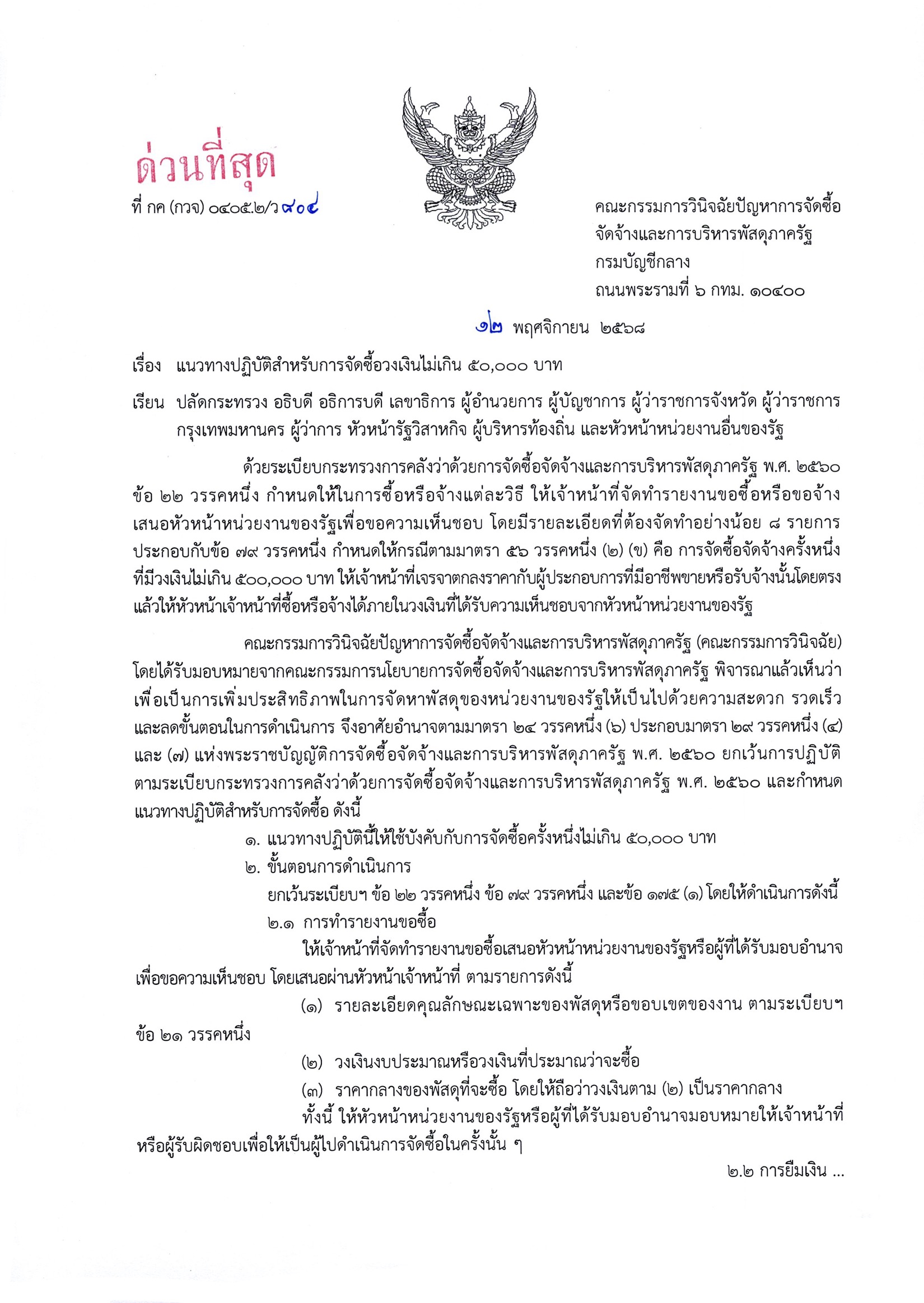 แนวทางปฏิบัติสำหรับการจัดซื้อวงเงินไม่เกิน 50,000 บาท (มีผลบังคับใช้ 1 ธันวาคม 2568 เป็นต้นไป)
