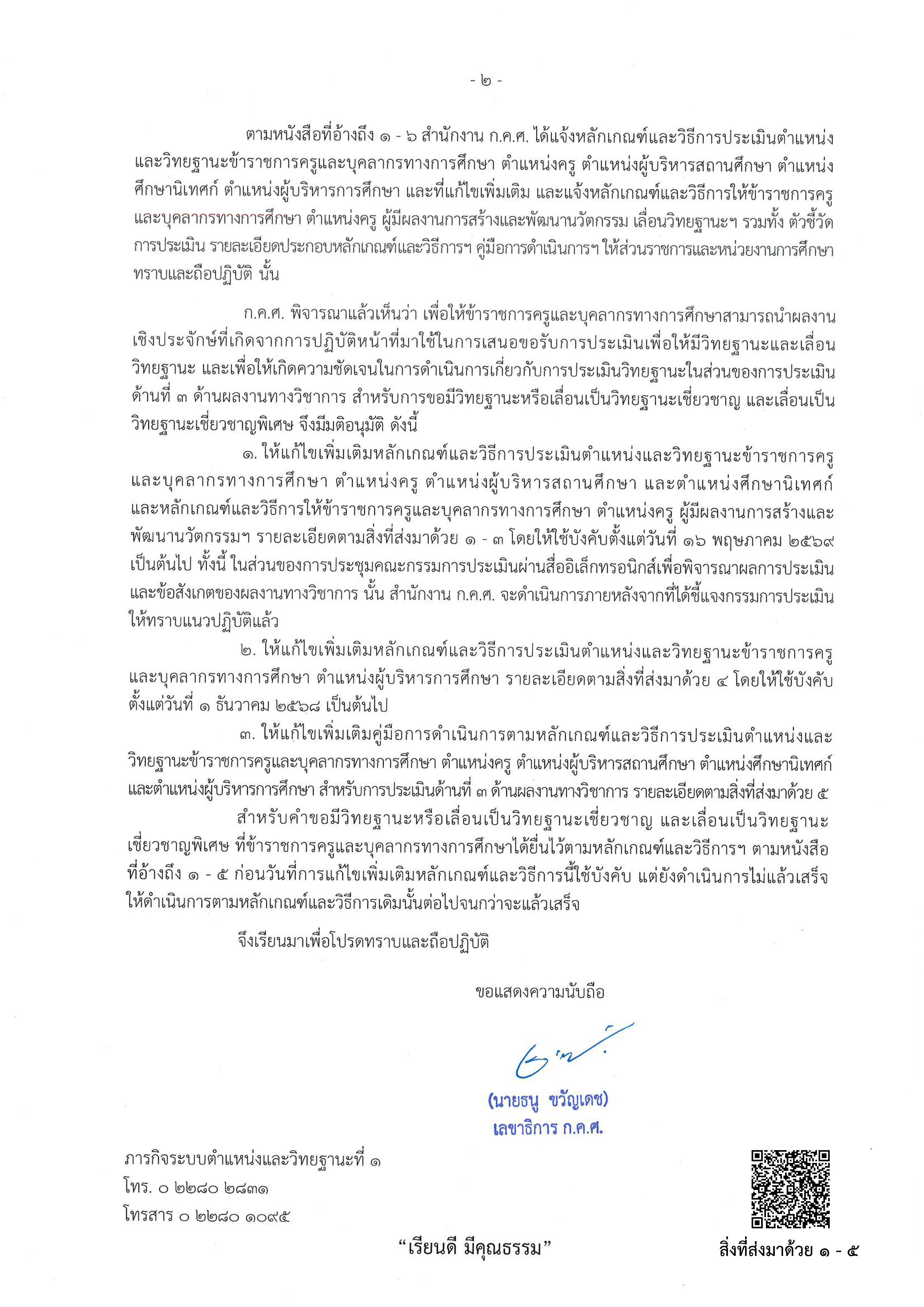 การแก้ไขเพิ่มเติมหลักเกณฑ์และวิธีการประเมินตำแหน่งและวิทยฐานะข้าราชการครูและบุคลากรทางการศึกษา (ว 9 - ว 12/2564 และ ว 18/2567)การแก้ไขเพิ่มเติมหลักเกณฑ์และวิธีการประเมินตำแหน่งและวิทยฐานะข้าราชการครูและบุคลากรทางการศึกษา(ว9-122564และ182567)