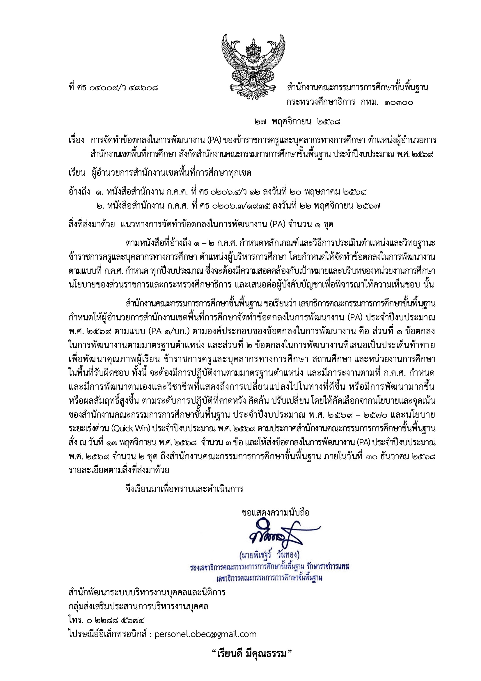 1. ว 49608 ลว 27 พ.ย.68 PAผอ.สพท.ปีงบประมาณ2569