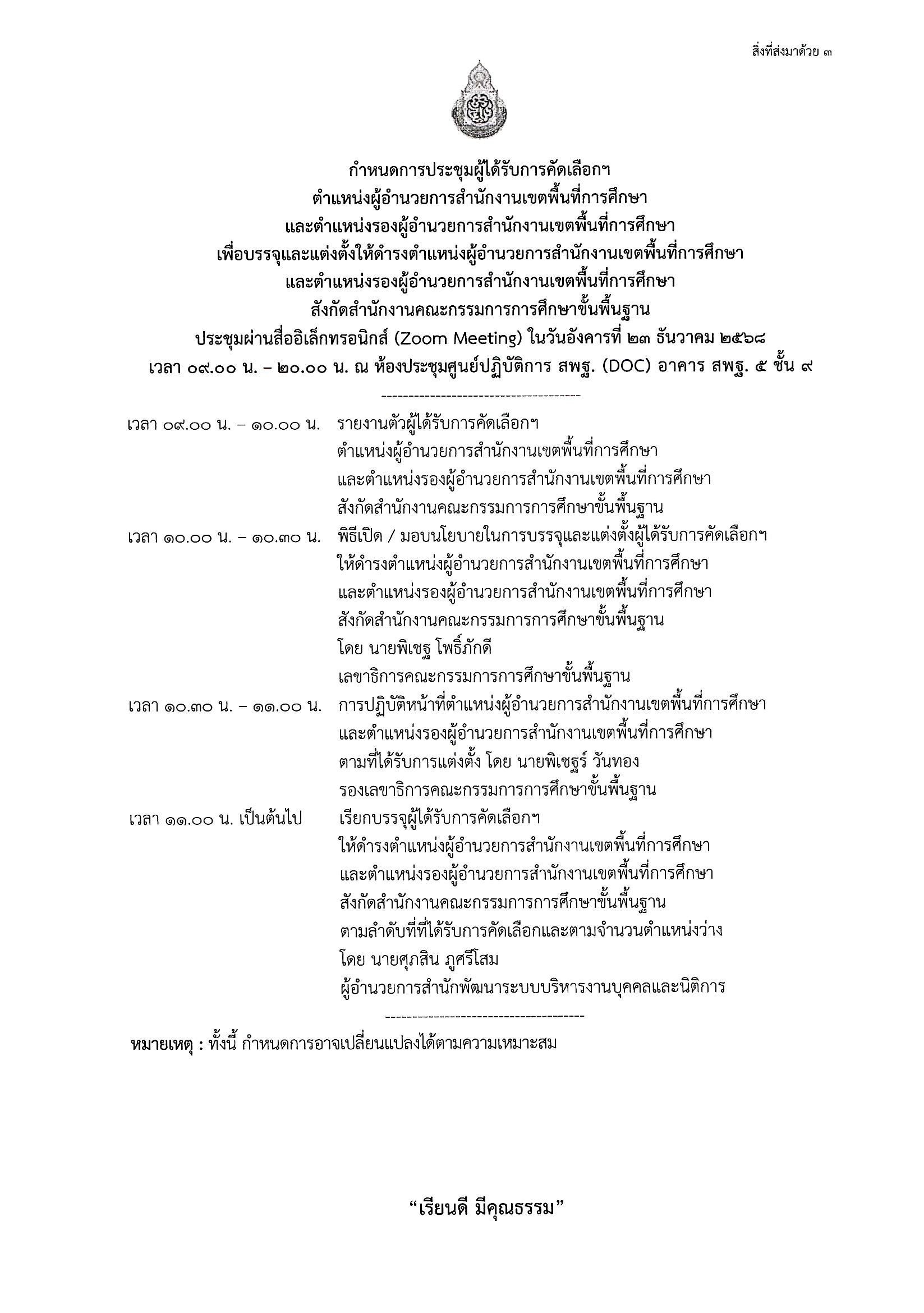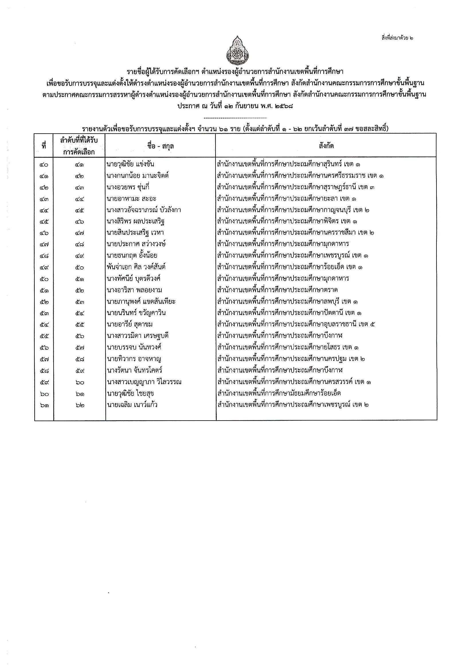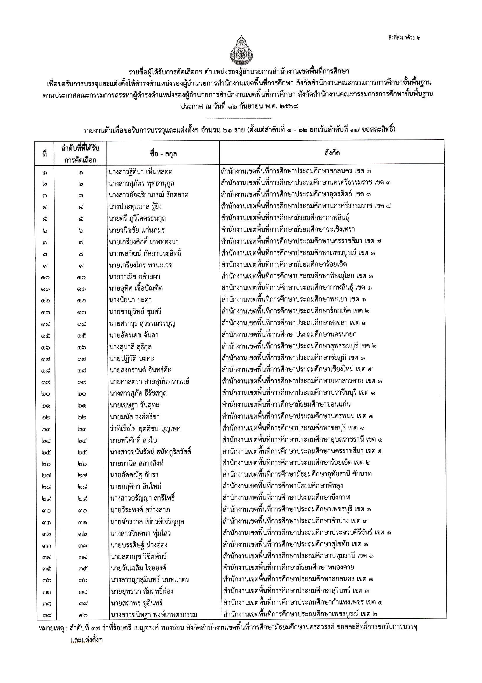 เมื่อวันที่ 19 ธันวาคม 2568 สำนักงานคณะกรรมการการศึกษาขั้นพื้นฐาน มีหนังสือ ศธ 04009/ว1925 เรื่อง รายงานตัวเพื่อขอรับการบรรจุและแต่งตั้งให้ดำรงตำแหน่ง รองผู้อำนวยการสำนักงานเขตพื้นที่การศึกษา