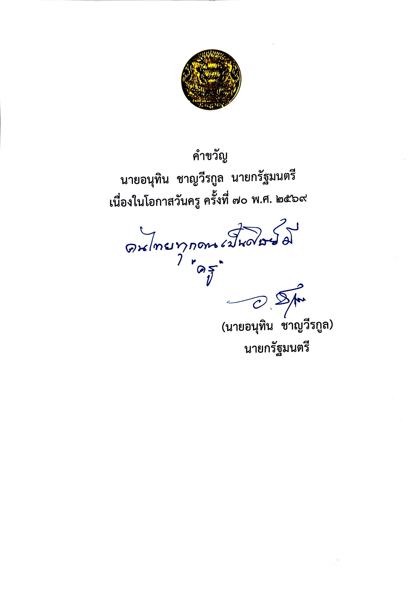 คำขวัญวันครู ครั้งที่ 70 พ.ศ. 2569คำขวัญวันครูครั้งที่70พ.ศ.2569