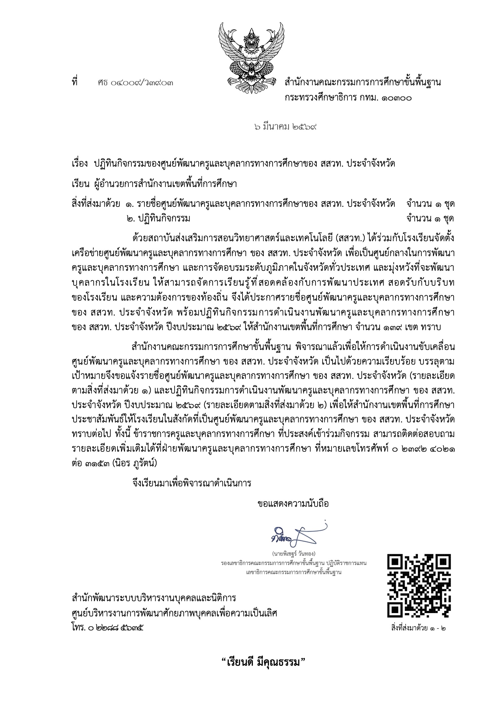 แจ้งปฏิทินกิจกรรมของศูนย์พัฒนาครูและบุคลากรทางการศึกษาของ สสวท. ประจำจังหวัด