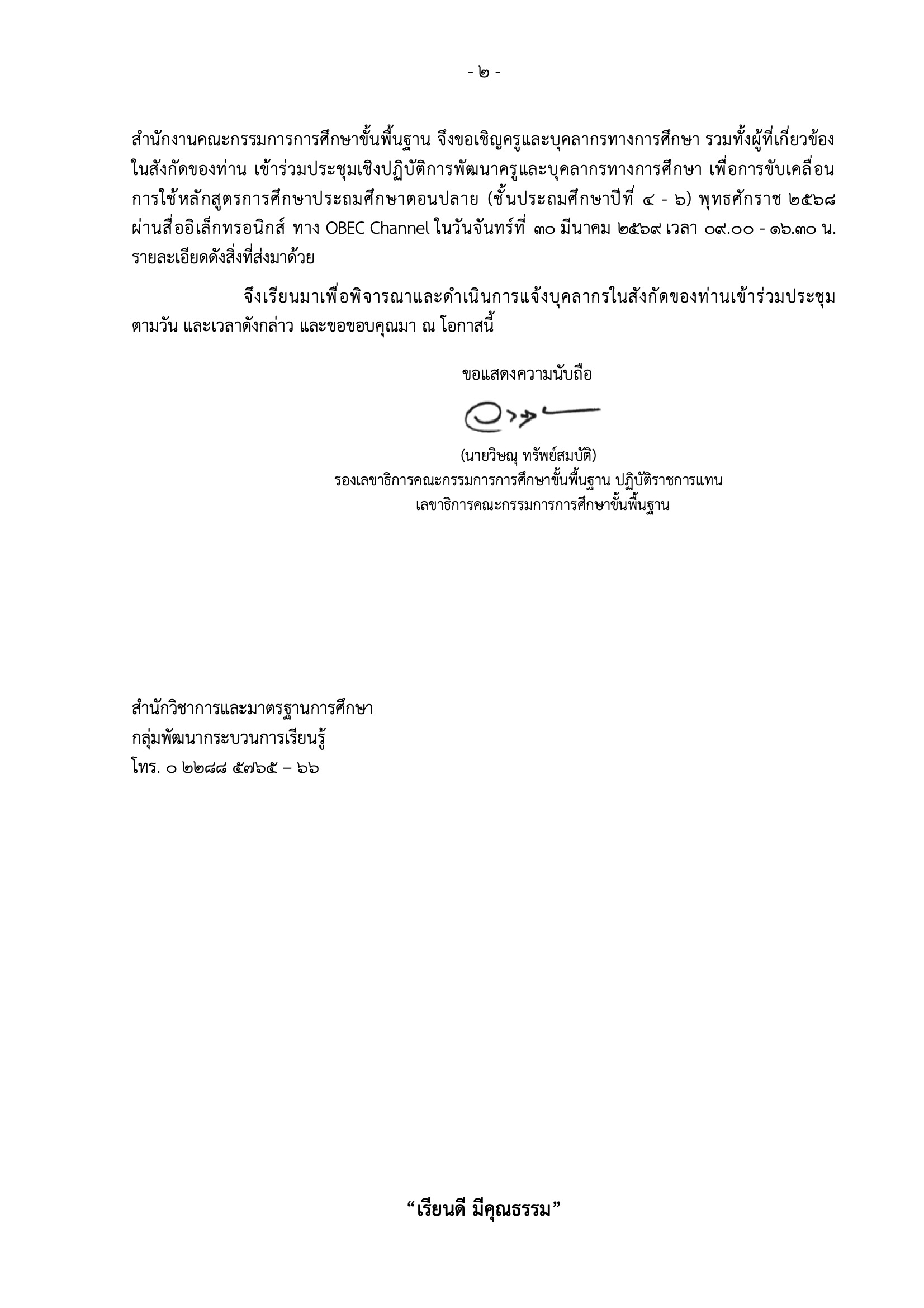 ประชุมเชิงปฏิบัติการพัฒนาครูและบุคลากรทางการศึกษา เพื่อการขับเคลื่อนการใช้หลักสูตรการศึกษาประถมศึกษาตอนปลาย (ชั้นประถมศึกษาปีที่ 4 - 6) พุทธศักราช 2568 ผ่านสื่ออิเล็กทรอนิกส์ ทาง OBEC Channel