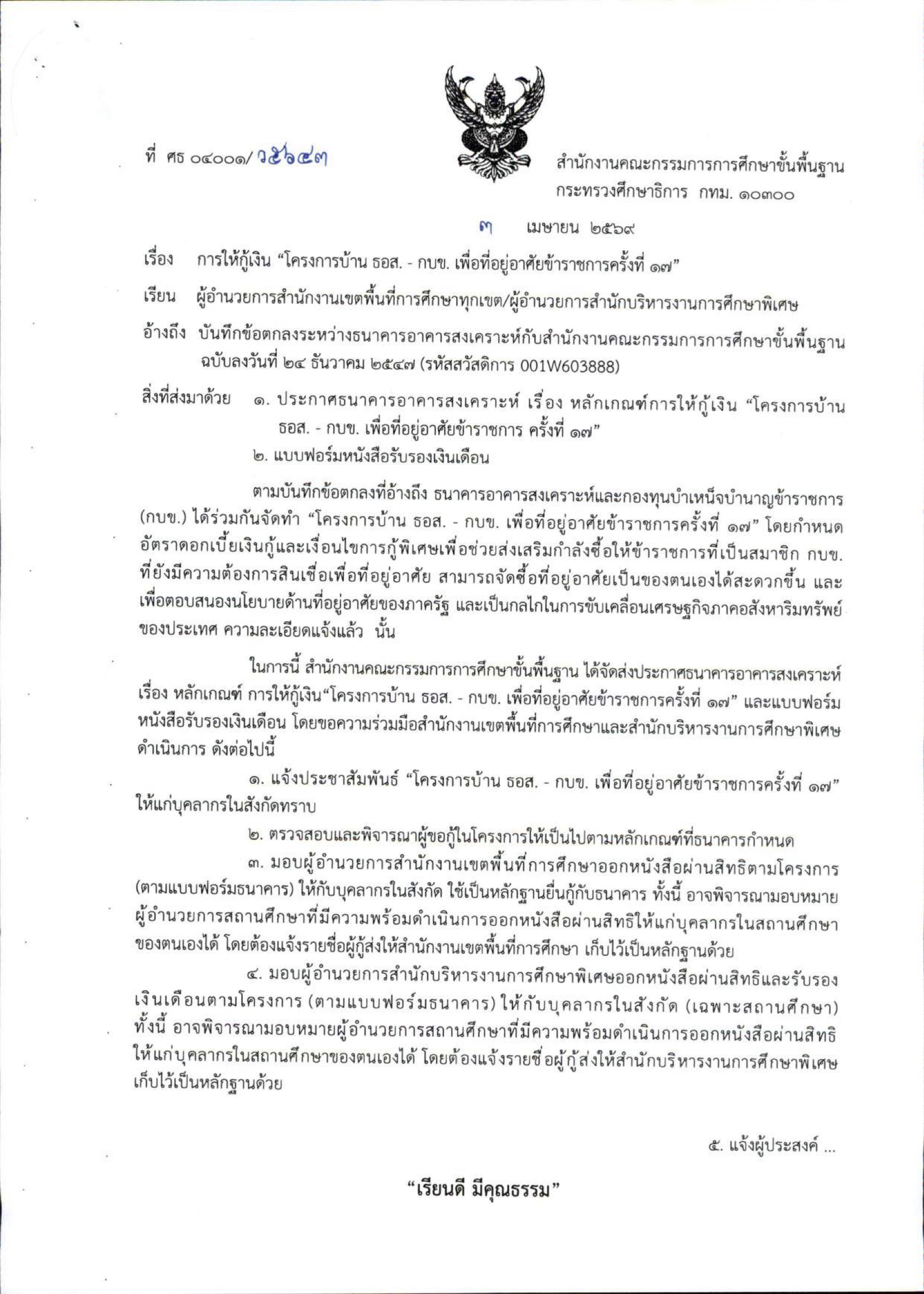 การให้กู้เงิน "โครงการบ้าน ธอส. - กบข. เพื่อที่อยู่อาศัยข้าราชการ ครั้งที่ 17"การให้กู้เงินโครงการบ้านธอส.-กบข.เพื่อที่อยู่อาศัยข้าราชการครั้งที่17
